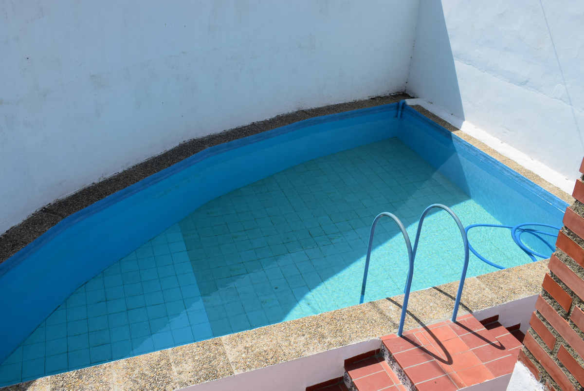 From the kitchen you enter in another corridor at the back, where you find another spacious bedroom, also with the original doors. The corridor gives access to the swimming pool in a private corner of the property.