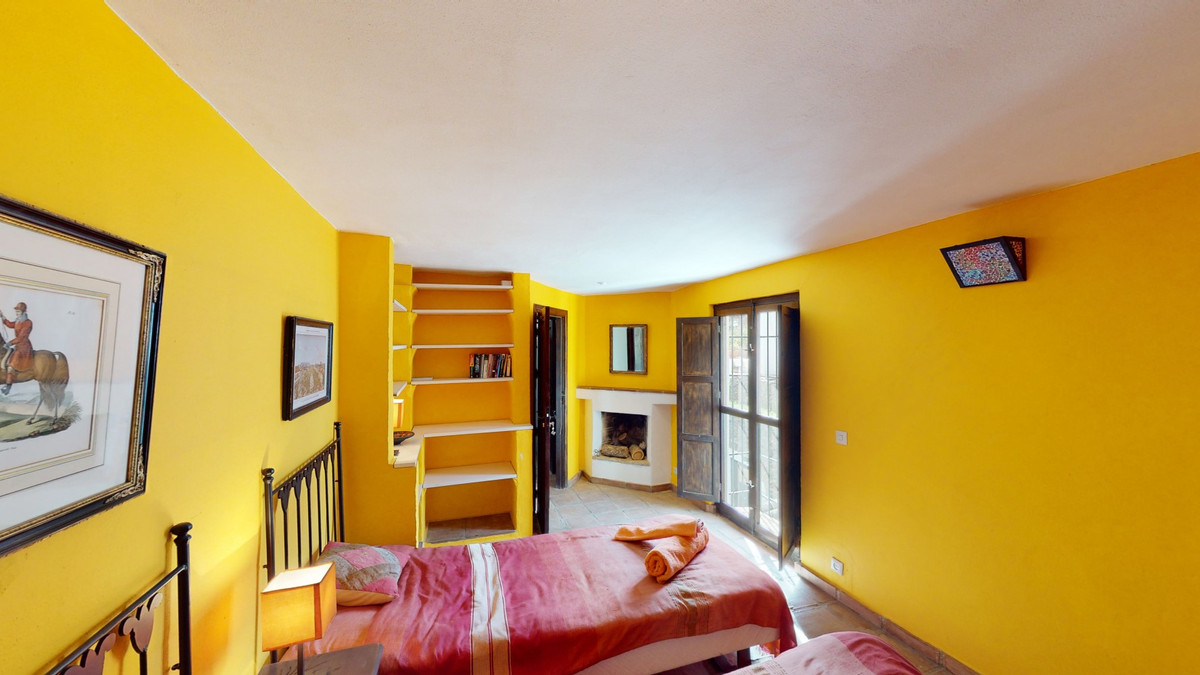 Are you looking for an oasis in harmony with nature? A place of peace and relaxation, where time runs a little slower? Yes?! Then we would like to show you this fantastic villa, in the mountains of Torrox. It offers an imposing, grand main house, a separate, small guest house and a pool, as well as 5,569 m2 of land, which is predominantly flat and thus offers countless possibilities. The layout of the property makes it possible to use the main house as two independent living units, with separate entrances. This fabulous property is perfect as a multi-family home, B&B or as an investment opportunity for a yoga center, event location, dance school or meditation temple.... An almost completely paved driveway leads you to a concrete parking area, which is partially covered. On this level is the charming guest cottage with its own covered terrace. It is equipped with a cozy, open living/dining area with a bed, a kitchen and a bathroom. The fireplace provides comfortable warmth in the cooler months. A driveway, as well as stairs, lead to the lower level. Another heavy wooden door with an iron horse door knocker grants entry into the spacious, imposing living area with fireplace, of the first part of the house. To the right is a guest toilet. Next to this is a room which is currently used as an office/library. It can also be heated to a comfortable temperature in the cooler seasons with the fireplace. We have adjacent a small, glazed room from which you can enjoy the view of the surrounding countryside. The large terrace at the front of the house offers breathtaking views of the famous white village of Frigiliana and the Sierra de Tejada in the background. Thanks to the hillside location, the hollow space under this terrace can still be closed and create more living space, if needed. From the living room, also with access to the terrace, one enters the spacious open kitchen with dining area. The interplay of traditional and modern has been perfectly achieved here. A glass patio door leads to the beautiful u-shaped and typical Andalusian courtyard with a fountain. On the second floor of the house there are three bedrooms and two bathrooms. The master bedroom has a large, modern bathroom with its own sauna, as well as a bathtub and shower. From two of the bedrooms there is access to an enchanted u-shaped balcony with views down into the Andalusian courtyard. Its wooden beams and plantings make it feel like you've stepped into another era. A corridor leads from this balcony to the second part of the house. On the second floor there is a bedroom with another fireplace, called the Sunroom because of its wall color. A staircase leads down to a huge open space with a large flat skylight that lets in natural light. The space can be used for a wide variety of possibilities. As a dance studio, atelier, or conference room. A feel-good temperature can also be created here with a great fireplace. On this level we also have a large heavy wooden door, the separate entrance to this part of the house. Right next to the entrance area there is a fully equipped bathroom. Through an open arch you enter a living area with a small, charming kitchen. Through almost floor-to-ceiling windows, you look out onto an idyllic pond and out into the countryside. There is another bathroom and two bedrooms, both with access to the outdoor area. The outdoor area includes a pool, many terraces with seating, a small vegetable garden and some olive trees. The bodega, or wine cellar, adds the finishing touches to the mansion and guarantees the right temperature for your wine. We are pleased to be able to present this dream property to you soon, either personally or via virtual viewing. Because this world, it is unique - just like our Axarquía. In Andalusia. On the Costa del Sol. Here, on the sunny side of life...