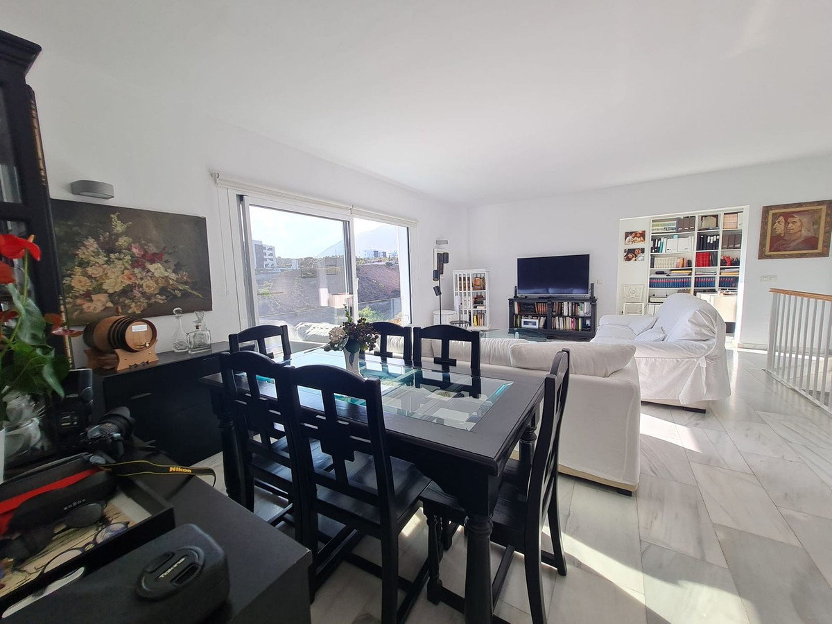 Spacious semi-detached house located in the prestigious Reserva del Higuerón private complex, on the border between Benalmádena and Fuengirola, a step away from all services and Carvajal beach with its beautiful promenade and restaurants. The suburban train station is 100 meters away and there is a free bus service for the residents of the complex.