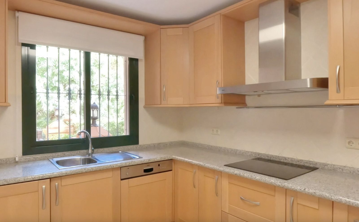 This Benahavis apartment is located in the prestigious complex. Built in 2005, these apartments were designed with high ceilings and generosity of space. This 3 bedroom property in Monte Halcones commands an elevated position with south-west orientation overlooking the coast below. With secure underground parking, convenience is key, with an elevator which rises up to open right outside the front door. Entering this home one is immediately struck by the elegance and comfort within this 3 bedroom apartment. Beautiful polished marble floors give a sumptuous base upon which the elegant furniture sits. To the left of the front door the kitchen is located, with plenty of granite worktop space and multiple wooden cupboards, making it perfect for clean and tidy food preparation.