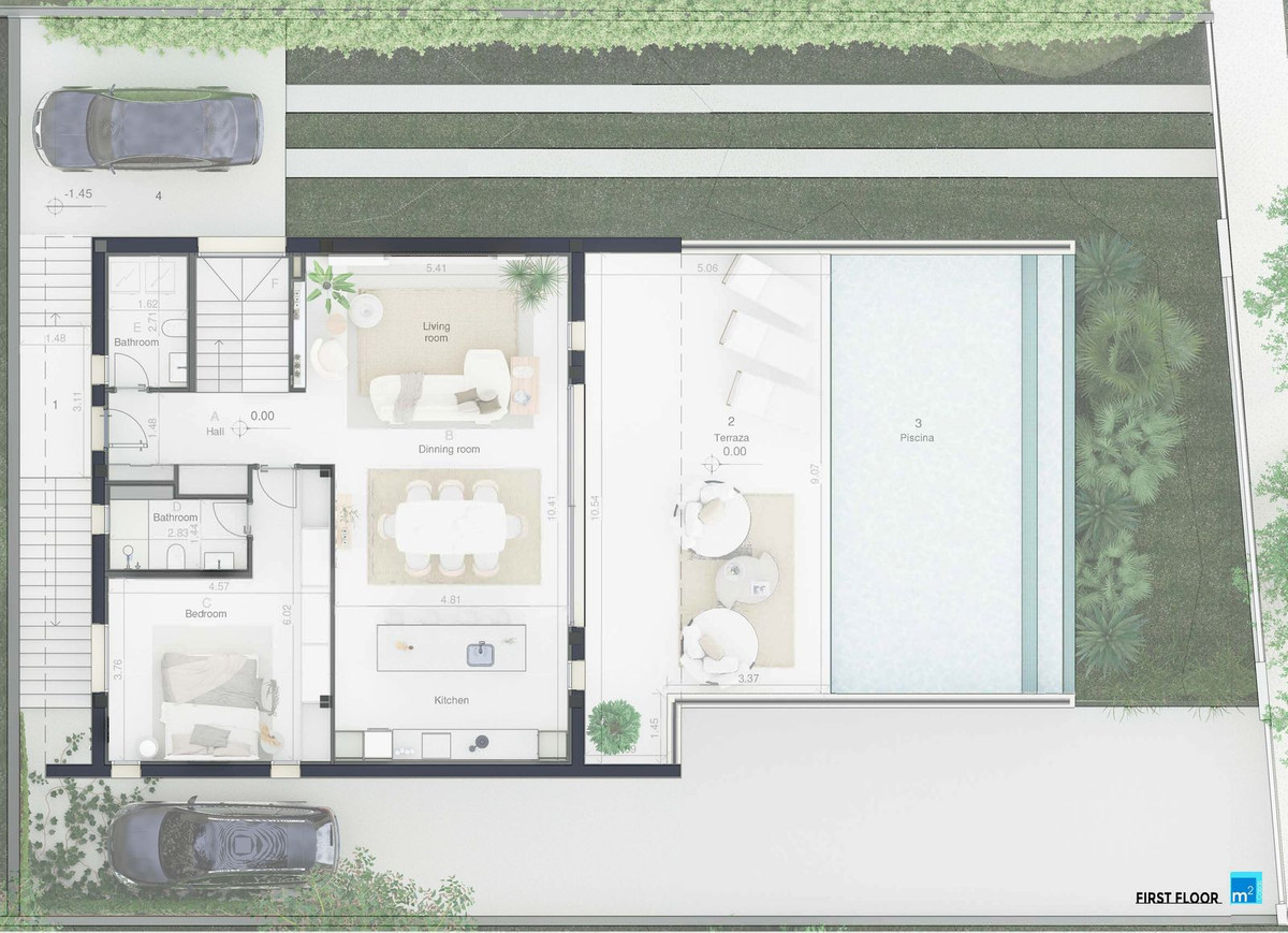 The lay-out of the lower floor is to be customized with 2–3 additional bedrooms or home offices, and an extra bathroom, tailored to your needs and lifestyle.