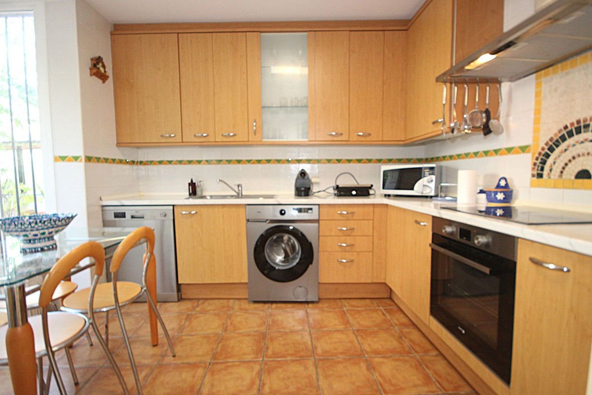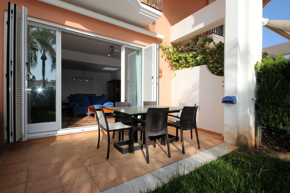 Nestled within one of Bahía de Marbella's most sought-after beachfront urbanizations, this stunning townhouse offers an unparalleled coastal living experience. Imagine waking up to the sound of the waves and having direct, private access to the golden sands of the beach just steps from your door. This exclusive community provides peace of mind with 24-hour security, ensuring a safe and serene environment for you and your family. The meticulously manicured lush gardens create a vibrant oasis, complemented by an extraordinarily large and beautiful swimming pool, perfect for leisurely dips on warm Mediterranean days.
