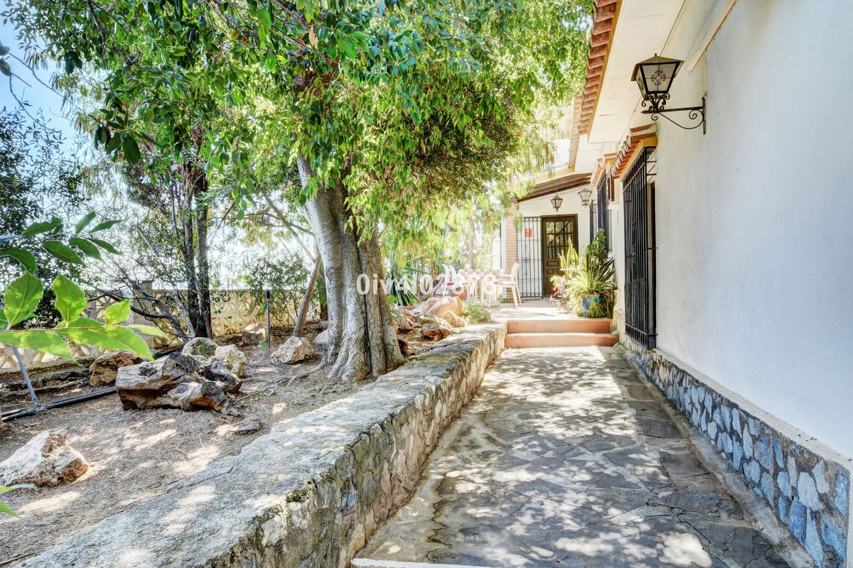 Nestled in an exceptional location that perfectly marries tranquil countryside living with the convenience of village life, this charming Andalusian-style villa is a true gem. Situated on a raised point with a serene, elevated position, the property offers stunning sea views towards Fuengirola, with the potential for panoramic views from various vantage points. The lush, mature trees and beautifully maintained bushes envelop the home, providing both privacy and a timeless character that is truly captivating.