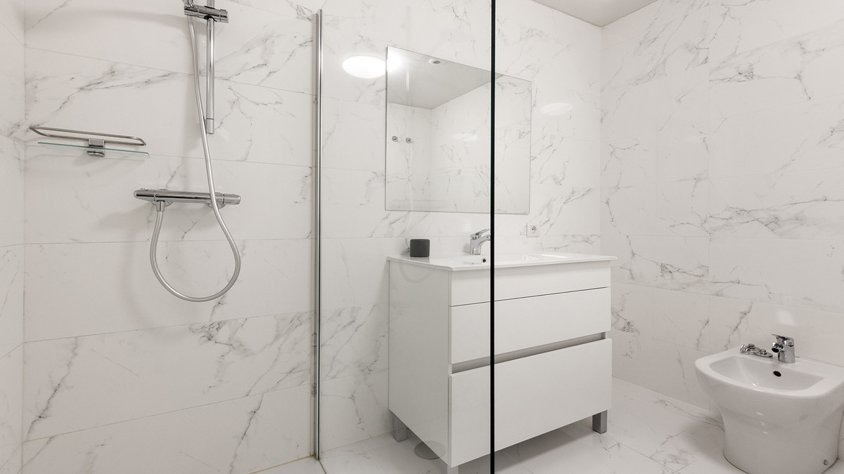 The property features two comfortable double bedrooms with fitted wardrobes and two generous bathrooms, one of which is en-suite. Every detail has been carefully maintained, making the apartment move-in ready. Modern comforts include air conditioning, electric blinds, and solar panels that add an eco-friendly touch. A private parking space and storage room are also included.