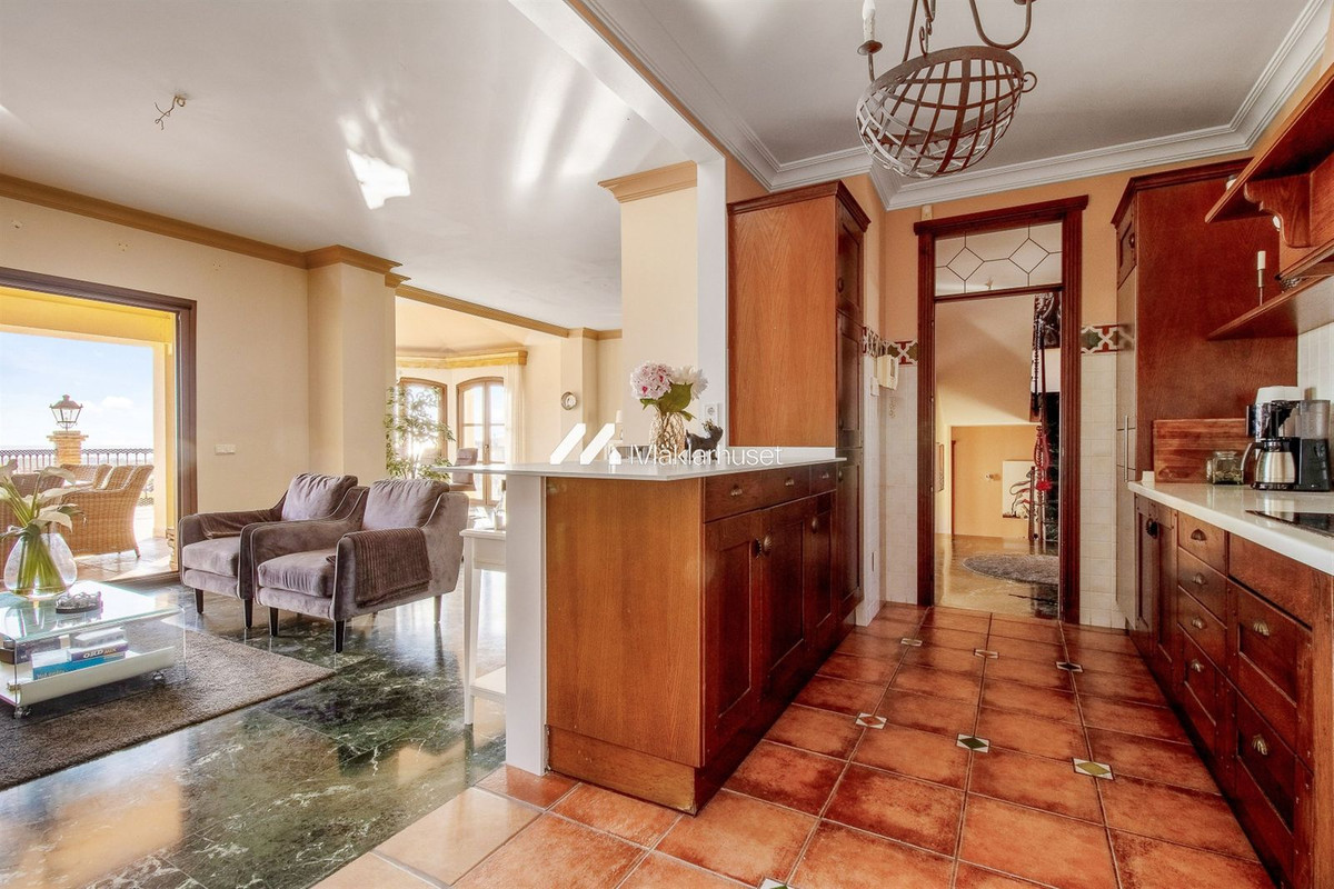 The main floor of the villa impresses with a spacious living room and an open-plan kitchen, where large windows let in natural light and frame the magnificent sea views. From here, you also have direct access to one of several terraces, providing an idyllic setting for relaxation or dining under the stars.