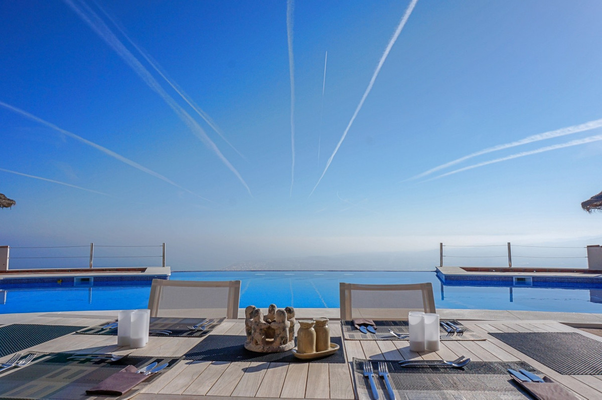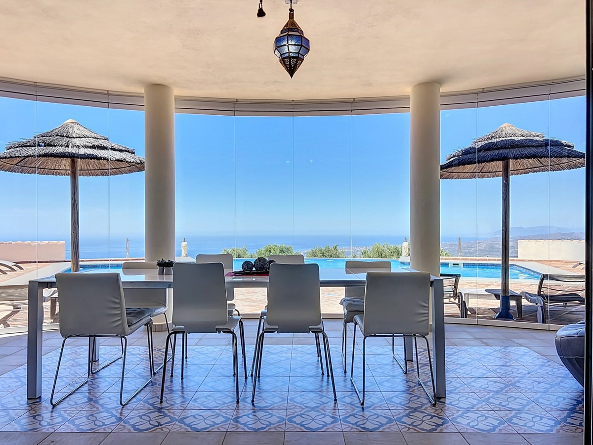 Imagine waking up each day to the soothing embrace of the Mediterranean in this exquisite villa. A true architectural masterpiece, this home offers an unparalleled lifestyle, seamlessly combining spacious interiors with awe-inspiring vistas that stretch all the way to the horizon. The living area welcomes you with an abundance of natural light, thanks to floor-to-ceiling sliding glass doors that perfectly frame the mesmerizing views of the azure sea. The open-plan design creates an ideal flow for both intimate gatherings and grand entertaining, blurring the lines between indoor luxury and outdoor paradise. For the culinary enthusiast, the gourmet kitchen is a dream come true, equipped with state-of-the-art appliances and ample space for creating memorable meals. Dine al fresco on the expansive terrace, where the gentle sea breeze enhances every moment. The lavish master suite, spanning 32.5 m2, offers a tranquil retreat with panoramic ocean views. Start your day in the spa-like bathroom, a true testament to luxury and comfort. The private balcony ideal for sipping morning coffee or enjoying an evening cocktail as you watch the sun dip into the sea. At the outside, the terracotta-tiled outdoor terrace is your personal oasis. Bask in the warm Spanish sun, host unforgettable parties, or simply lose yourself in the mesmerizing views of the coastline. Beyond the beauty, this villa offers a rare opportunity for those looking to start a business, like a B&B. With 4 rentable rooms, each with its own bathroom and entrance, the property has already been successfully operated as a B&B, receiving only glowing reviews. In addition to the rental rooms, theres a private bedroom on the first floor with its own bathroom, and another bedroom with a bathroom in the basement. The fully equipped kitchen inside and the wonderful outdoor kitchen provide all the necessary amenities for running a successful business, while the large underground garage offers plenty of space for storage. Located in Algarrobo, Málaga, this property ensures easy access to world-class amenities, pristine beaches, and rich cultural experiences, all while offering the perfect setting to indulge in Mediterranean living. Whether you're looking for a luxury family home, a business opportunity, or simply a slice of paradise, this villa delivers on every front. This is more than just a home; its a lifestyle. Embrace the pinnacle of Mediterranean living in this extraordinary villayour dream of owning a piece of paradise is now within reach. Dont miss the chance to elevate your life to new heights of luxury, beauty, and opportunity. We are pleased to be able to present this dream property to you soon, either personally or via virtual viewing. Because this world, it is unique - just like our Axarquía. In Andalusia. On the Costa del Sol. Here, on the sunny side of life...