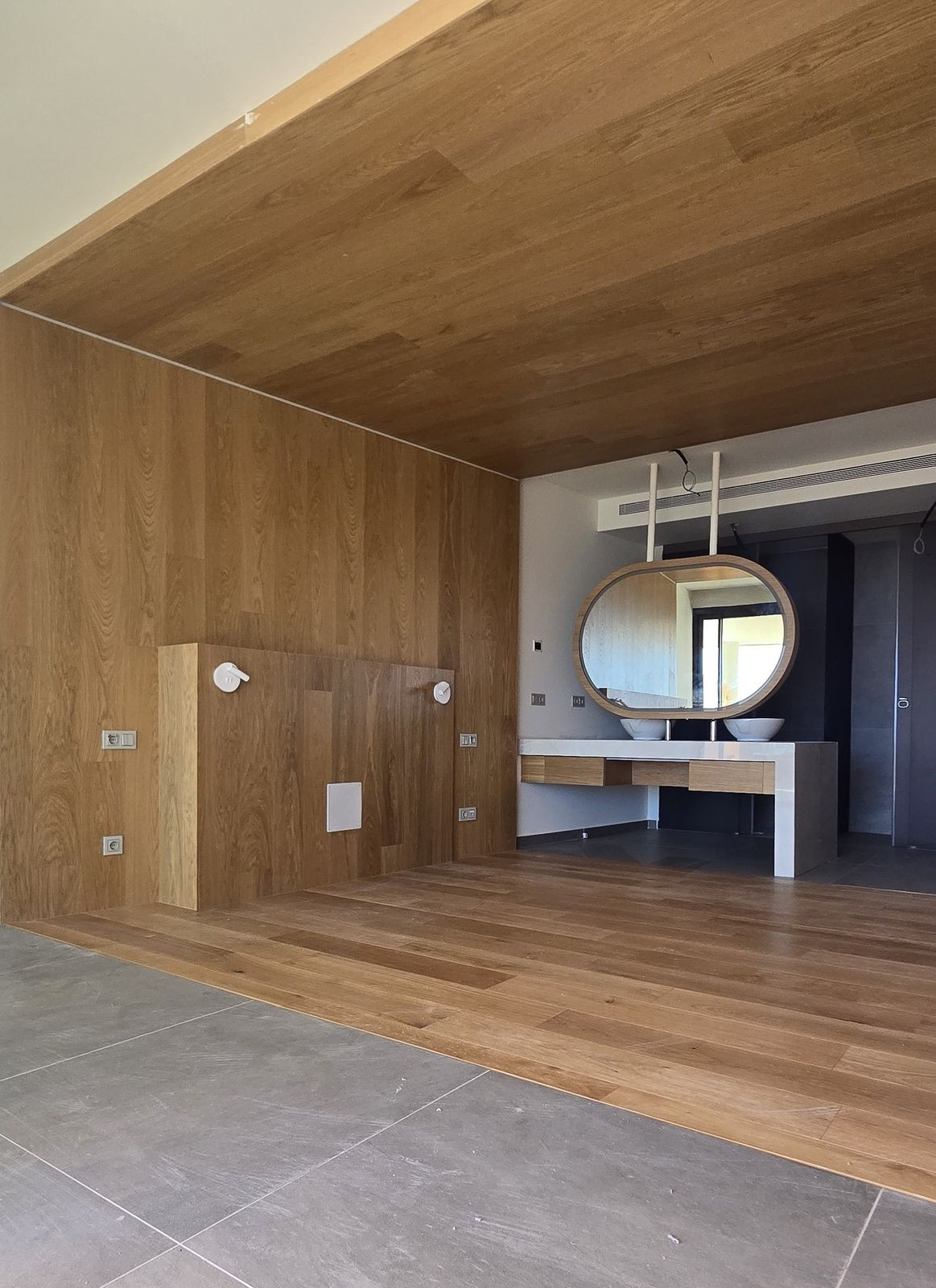 INSIDE - quiet luxury: open plan and spacious, noble materials, clean lines; floor-to-ceiling sliding glass doors that seamlessly extend your living space onto the elegant terrace.The terrace merges with the interior, offering an outdoor living experience.