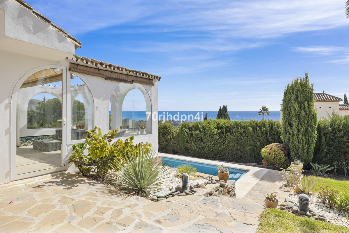 Ontdek deze charmante villa met panoramisch uitzicht op zee, gelegen op een royaal perceel van 1.024 m² in een van de meest gewilde gebieden van de Costa del Sol.